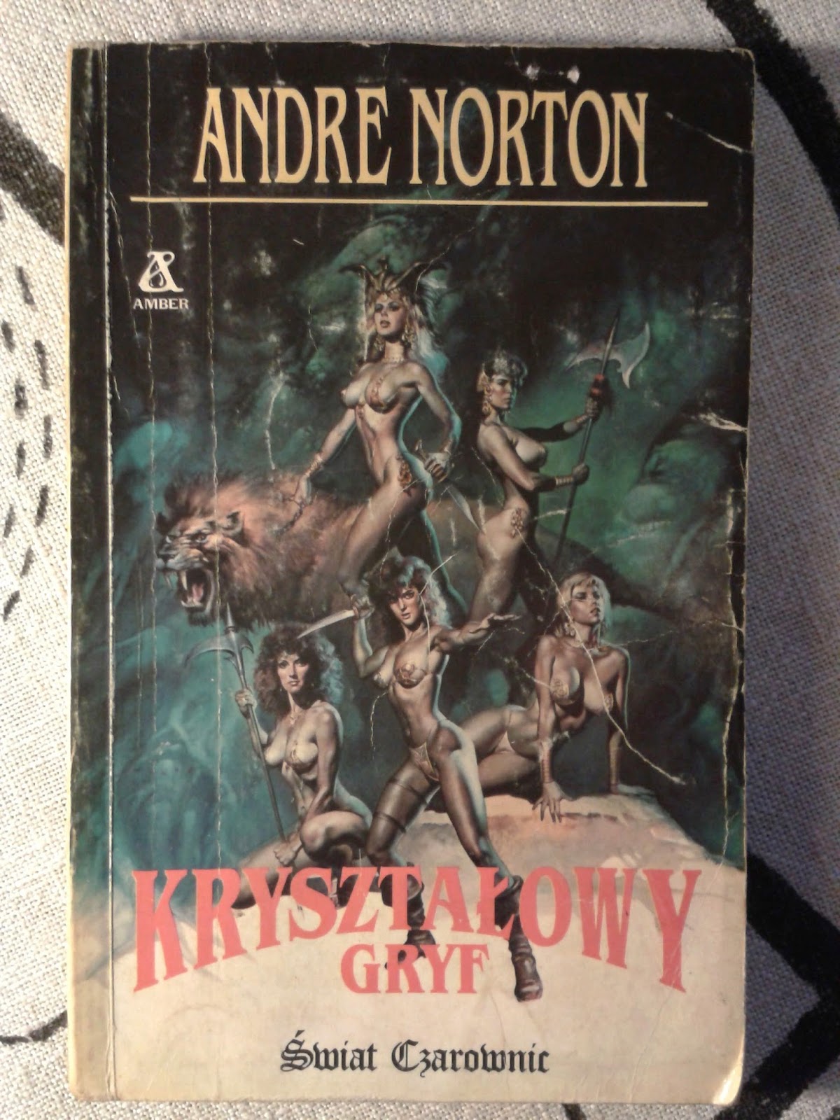 Tym razem autorem ilustracji jest nie Frazetta, a inny światowej sławy artysta fantasy, Boris Vallejo. Jak głosi Wikipedia, jego obrazy "najczęściej przedstawiają umięśnionych bohaterów i skąpo ubrane Walkirie". Spoglądając na okładkę Kryształowego Gryfa, trudno się nie zgodzić. Trudno również Vallejo odmówić talentu w uchwyceniu piękna kobiecego ciała, ale... No właśnie, ale. Ale nie do tej książki (którą, nota bene, przeczytałam po raz pierwszy mając lat dwanaście - spokojnie, powieść dość młodzieżowa). Na szczęście pozostałe dwa tomy mają już ilustracje adekwatne do treści - również autorstwa Vallejo.